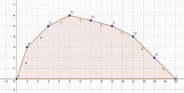我们发现 \(f\) 关于 \(j\) 这一维是凸的(而非上文的 \((i,j)\)),故将 \(f(n,j)\) 关于 \(j\) 的函数提取出来(记为 \(f_n(j)\))。发现只有最高点是可以一次斜优快速求出来的,故可以认为在当前复杂度限制下,整个函数除了最高点以外都是未知的(注意可以在 DP 时记录极值点的横坐标,即分了几段)。